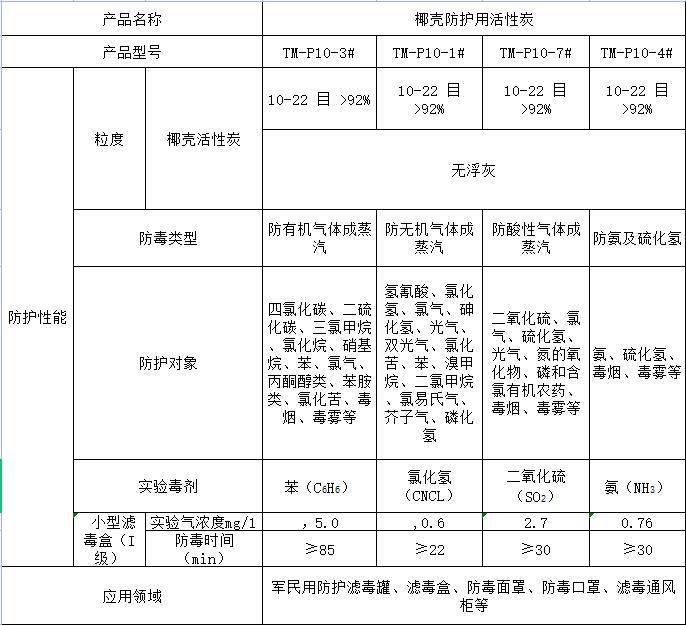 首頁 > 產品知識 防護專用活性炭 字號 + - 本品采用先進生產工藝設備和特殊的工藝條件精制而成的特種浸漬活性炭,外觀為暗黑色柱狀顆粒,具有耐磨強度高,外狀規則,粒度均勻等優點,特別針對不同的應用場所,分別具有較強的催化吸附作用。防護面具專用活性炭,通過生產工藝的孔徑、孔容積控制,提高吸附劑的選擇性、吸附量,使其具有:1.吸附量大、對載入藥品附著力強的特點;2.耐磨損的特點;3.防護能力衰減緩慢的特點。椰殼防護活性炭技術指標應符合下表要求:煤質柱狀防護活性炭技術指標應符合下表要求 適用于各種過濾式防護面具、礦用過濾式自救器干燥劑的載體及濾毒通風裝置。不僅適用于個人防護,還適用于群體防護,同時也話用干各種復雜環境下的氣相吸附,從而實現對相關人吊呼吸系統的保護。