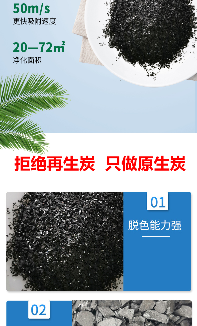 活性炭用木屑、果殼、褐煤等含碳物質(zhì)為原料,經(jīng)碳化和活化制成。有粉狀(粒徑為10~50微米)和顆粒狀(粒徑為0.4~2.4毫米)兩種。通性是多孔,比表面積大。總表面積達(dá)每克500~1000㎡。主要性能參數(shù)是吸附容量和吸附速率。吸附容量是單位重量活性炭達(dá)到吸附飽和時能吸附的溶質(zhì)量,和原料、制造過程及再生方法有關(guān)。吸附容量越大,所用活性炭量越省。吸附速率是指單位重量活性炭在單位時間內(nèi)能吸附的溶質(zhì)量。因吸附有選擇性,性能參數(shù)應(yīng)由實(shí)驗(yàn)測定。顆粒活性炭要有一定的機(jī)械強(qiáng)度和粒徑規(guī)格。