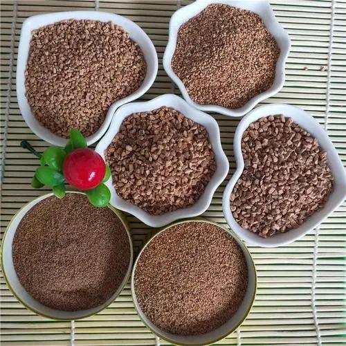 果殼濾料采用植物果殼為原料,經(jīng)破碎、拋光、蒸洗、藥物處理和多次篩選加工而成。可采用的植物果殼有核桃殼、椰子殼等。果殼濾料具有耐磨、抗壓、不在酸堿性水中溶解、不腐爛、不結(jié)塊、易再生,較強(qiáng)的除油性能等優(yōu)點(diǎn),被廣泛運(yùn)用在各種廢水處理(特別是含油廢水)中。果殼濾料是取代石英砂濾料來(lái)提高水質(zhì)、大幅度降低水處理成本的新一代濾料。