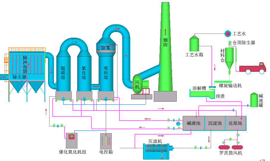 5.副產品可資源化進行利用,并產生一定的經濟效益。對鋼鐵公司是循環經濟,對貧硫國家和農業大國而言,在治理污染的同時充分回收利用硫資源(濃硫酸、硫酸、硫磺)或生產化肥—硫胺等等均有重要和深遠的歷史意義和現實意義。