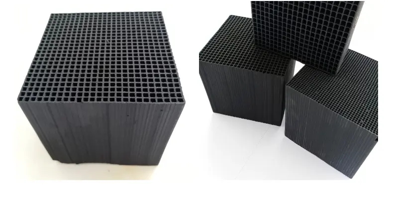 蜂窩活性炭,這種活性炭是蜂窩狀的,通常有立方體和長方體。蜂窩活性炭可根據客戶需求制造,這種活性炭的優點是見效快,可以長期使用,但價格是柱狀活性炭的兩倍左右。可不同程度的去除污染物,主要包括二甲醛、甲醇、乙醇、乙酸、乙酯、乙醚、丙酮、苯、苯乙烯、氯、氧化氮、四氯化碳、光氣和惡臭氣體等酸堿性氣體,適用于氣體排放污染嚴重一些的領域。