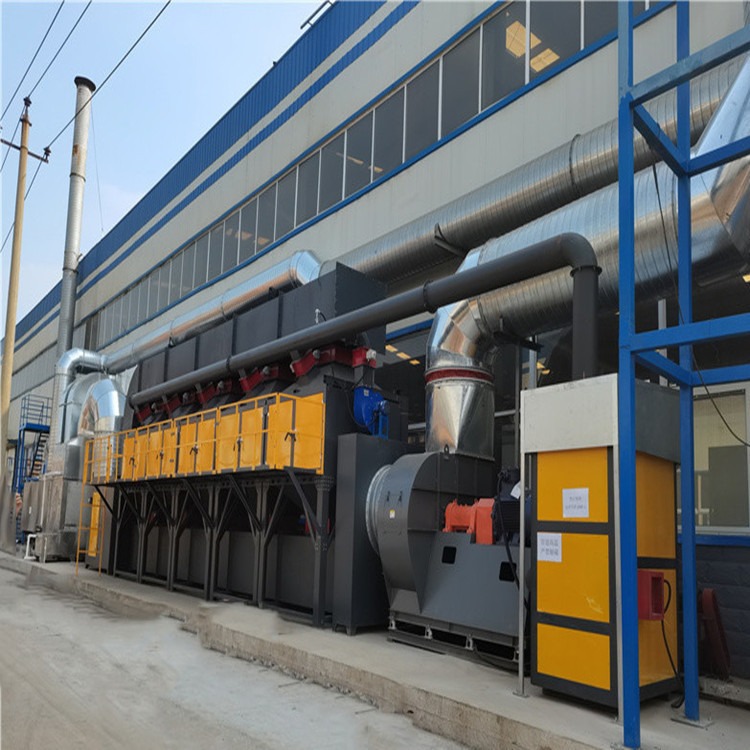 橡膠廠車間煉焦除塵系統選用廢氣治理活性炭吸附濃縮催化燃燒設備處理效率高達99%,主要是針對處理前大風量,低濃度的有機廢氣把它濃縮成小風量,高濃度的有機廢氣凈化后,通過80℃的熱空氣對吸附在活性炭表面的高濃度的有機廢氣進行高溫脫附,把脫附出來的高濃度的有機廢氣送達催化燃燒氧化爐進行285℃-400℃之間的高溫氧化形成二氧化碳和水達標排放。