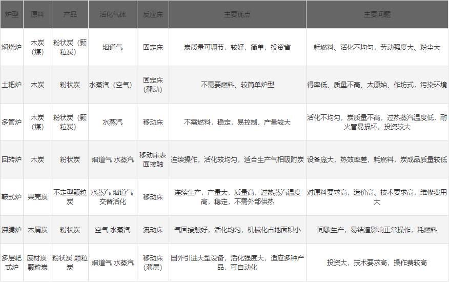 6)多層耙爐:活化氣體:煙氣和水蒸氣。主要優(yōu)點(diǎn):國(guó)外引進(jìn)大型設(shè)備,活化強(qiáng)度高,產(chǎn)量大。適應(yīng)各種產(chǎn)品。主要問(wèn)題:投資大,技術(shù)要求高,運(yùn)營(yíng)成本高。