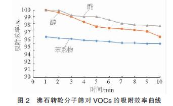 圖2表明,對于包裝印刷行業(yè)廢氣中含有的VOCs物質(即苯系物、醇類與酯類物質),疏水性分子篩均能進行有效吸附。