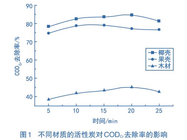 1、活性炭材質對CODcr去除率的影響
