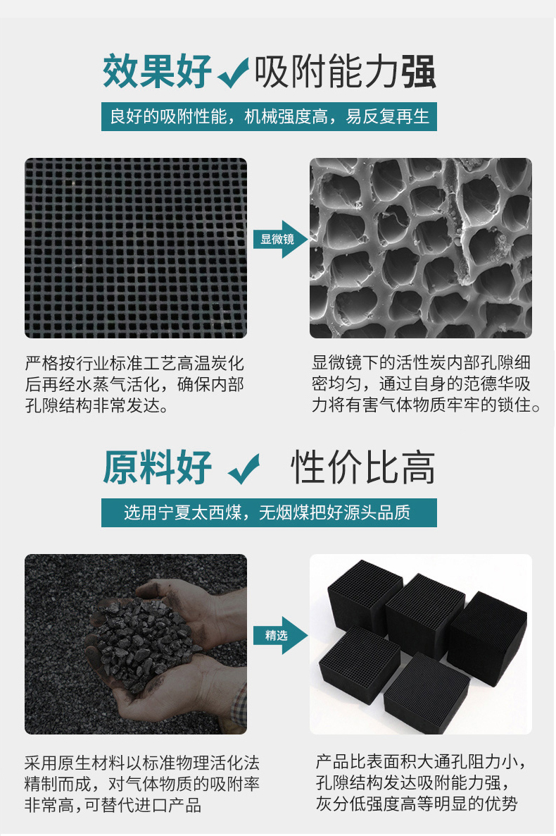 蜂窩活性炭的制造方法,由活性炭、有機聚合物粘合劑和有機潤滑劑組成的復合材料有效地制造成蜂窩活性炭,蜂窩活性炭的整體的加工性與其尺寸之間的關系巧妙。例子包括洗滌系統或者活性炭濾器 這種拆卸技術可以分為吸附,分解,掩蔽或生物濾池,取決于方法。有兩種類型的吸附;物理吸附,使用有機化學物質活性炭或活性炭纖維或無機化學品等作為沸石、 和化學吸附,使用化學處理活性炭或離子交換劑。活性炭,長期作為代表吸附劑,已廣泛應用于工業,醫療或環境目的。因此,活性炭已經根據其特定的表面積和多樣性開發孔結構和尺寸通過改變一些相關聯物理化學特性,包括生物的類型材料和激活程序。活性炭主要分類為粉狀活性炭和顆粒狀活性炭,炭化或活化的材料一般是煤或木質材料。 蜂窩狀活性炭是一種新型環保活性炭廢氣凈化產品,能有效降低異味和污染物,達到廢氣一級排放標準。